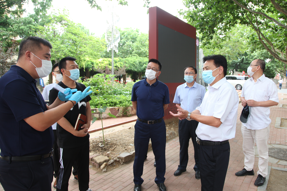 7月27日上午,校党委副书记、校长李雪铭、校领导朱成利、丛茂国结合大连市疫情防控最新要求,重点检查学校暑期疫情防控工作,学校相关部门负责人陪同检查。