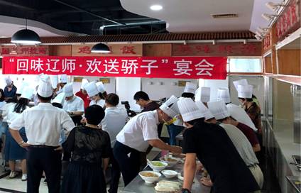 6月18日,校领导宫福清、李雪铭、李培山、刘向军、朱成利、肖继光、苑晓杰、丛茂国、相关部门负责人、各二级单位党政负责人、教师代表分别到黄河路校区北山食府和西山湖校区西山食府,为毕业生包饺子,并参加了欢送毕业生的“骄子宴”。